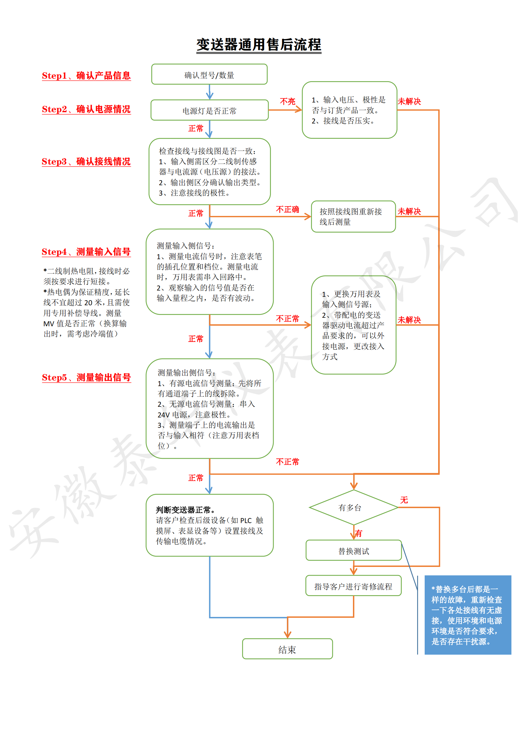 當使用的變送器/隔離器需要售后的時候,可參照以下通用售后流程: