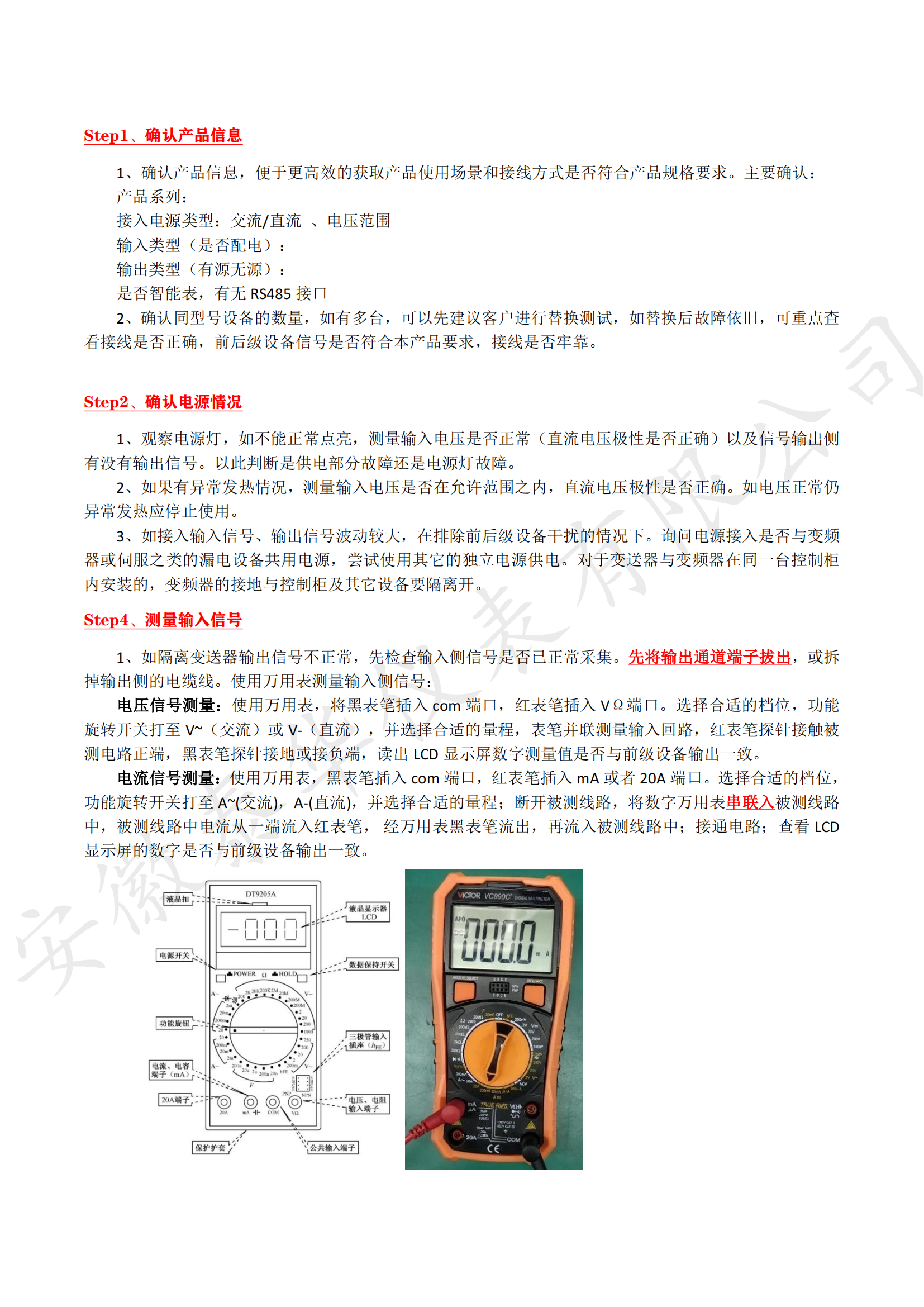 以上是變送器/隔離器的通用售后流程,方便用戶在使用產(chǎn)品過程中遇到的產(chǎn)品問題快速排查,更高效的解決產(chǎn)品售后問題。更多的產(chǎn)品信息歡迎搜索【安徽泰華儀表有限公司】官方網(wǎng)站。或致電公司工程師范經(jīng)理;手機:18005571352;電話:0557-3042599。